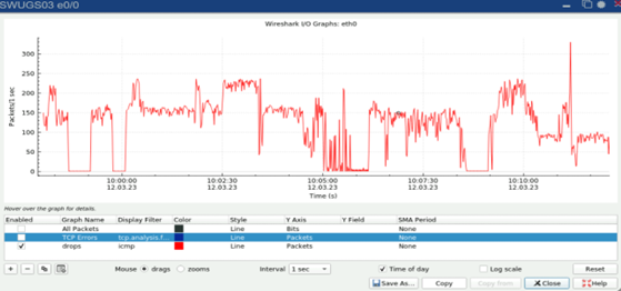 Fig. 10 - Excesso de tráfego no circuito entre o SWUGS_03 e SWUGS_01.