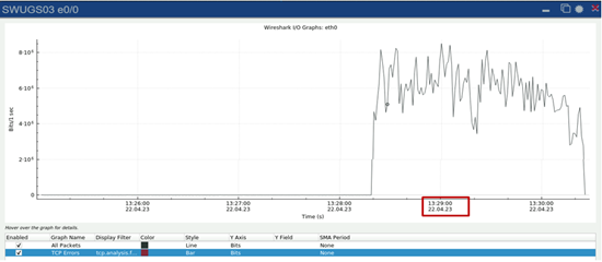 Fig. 10 -Excessive traffic on the circuit between SWUGS_03 and SWUGS_01.