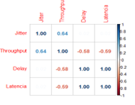 Fig. 7-Correlation matrix between delay, jitter and bitrate